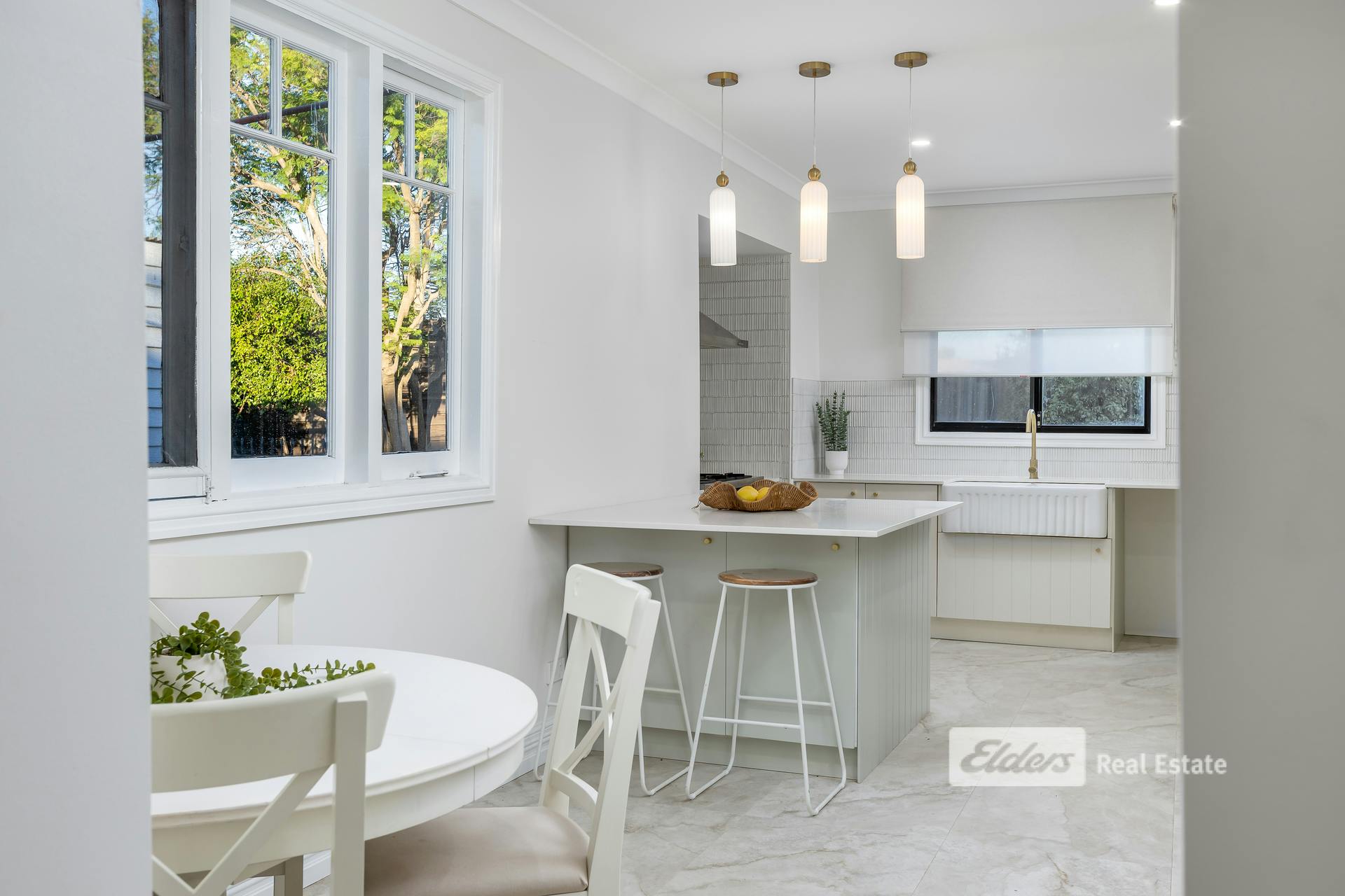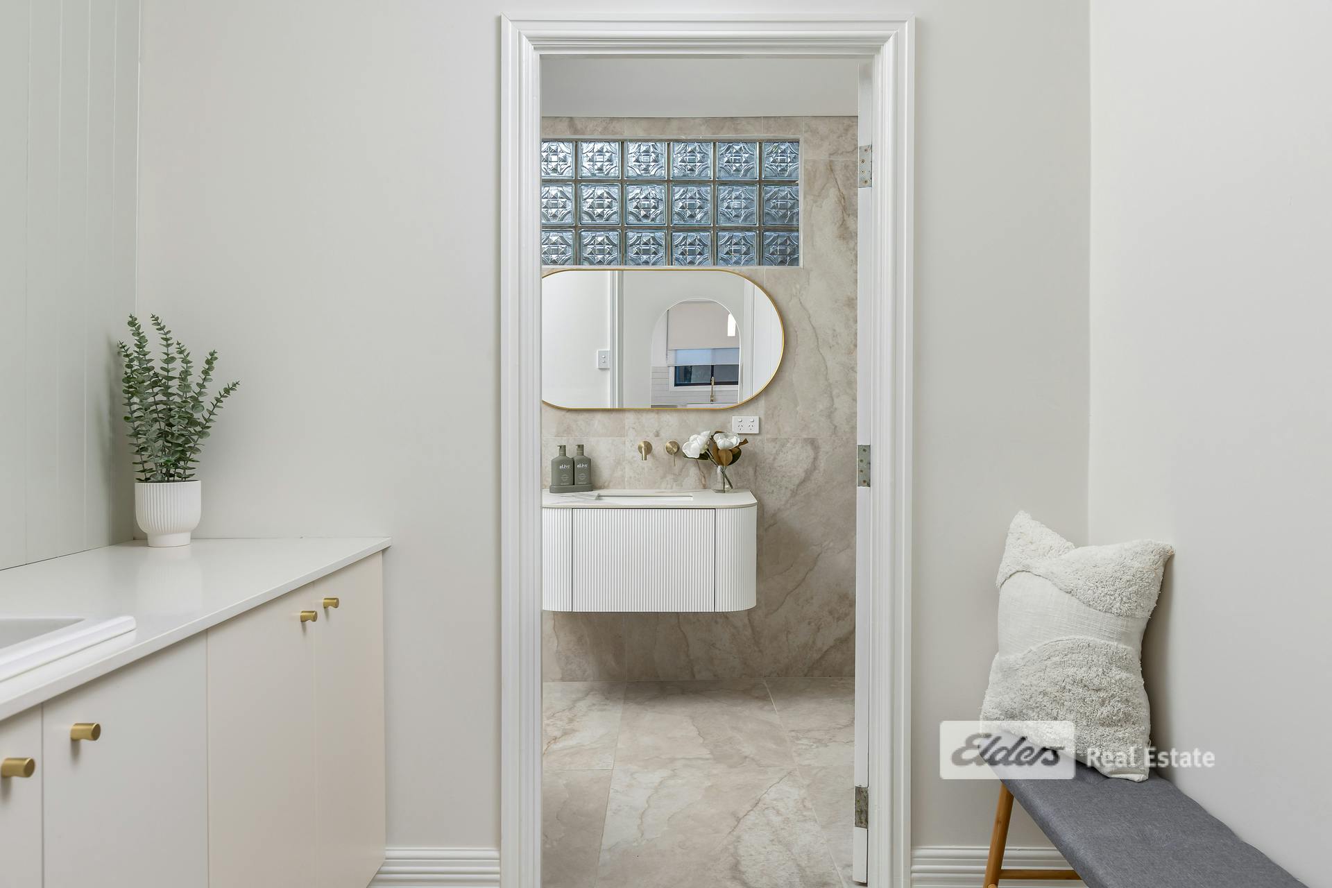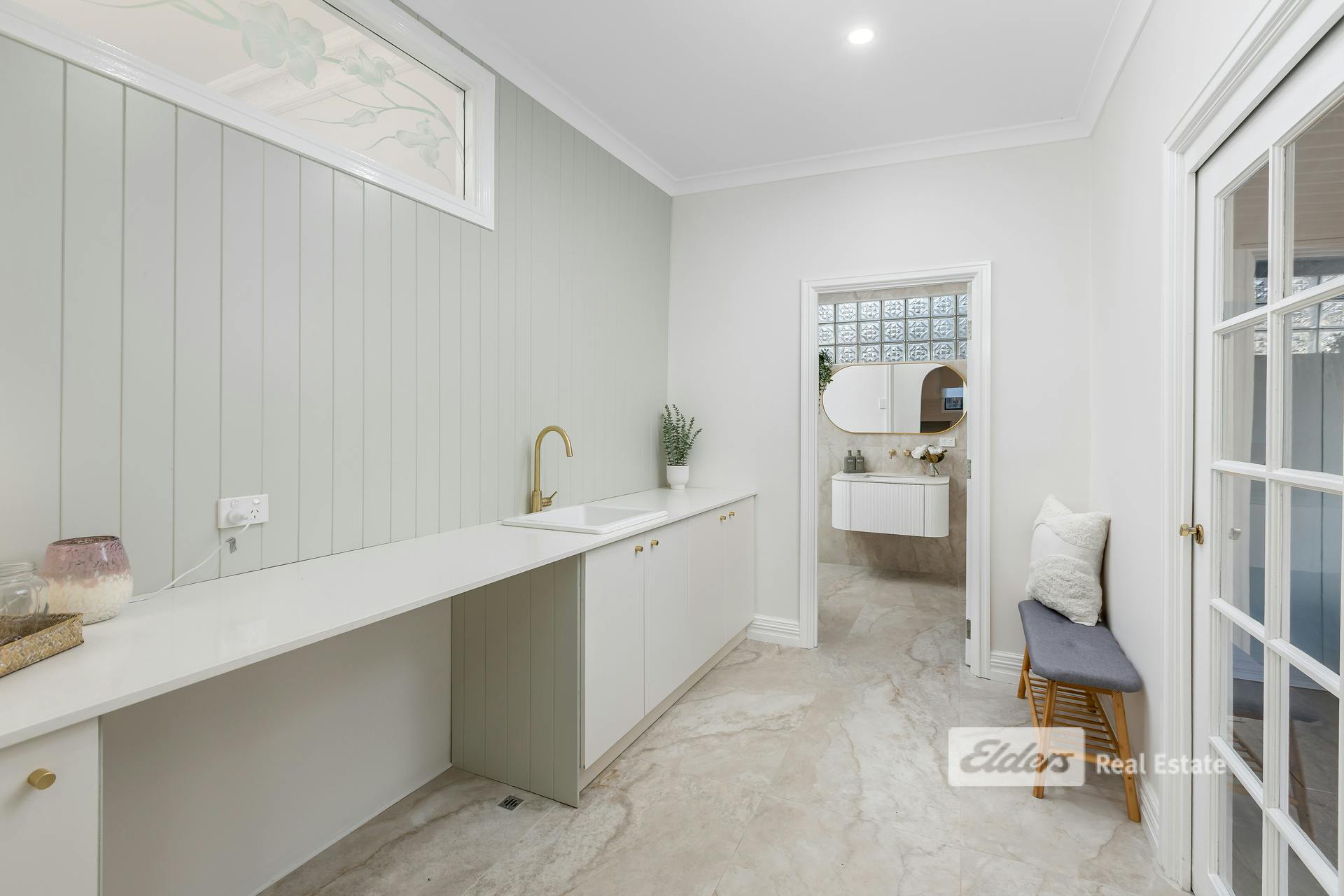 The bathrooms have been finished to an exceptional standard, with three fully renovated spaces featuring premium fixtures and self-cleaning tornado toilets. The master ensuite is a standout, showcasing federation tiles and gold tapware. A new laundry and mudroom continue the theme, with stone benchtops and floor-to-ceiling cladding, while large-format travertine tiles flow wall-to-ceiling from the kitchen through to the laundry and bathroom zones.