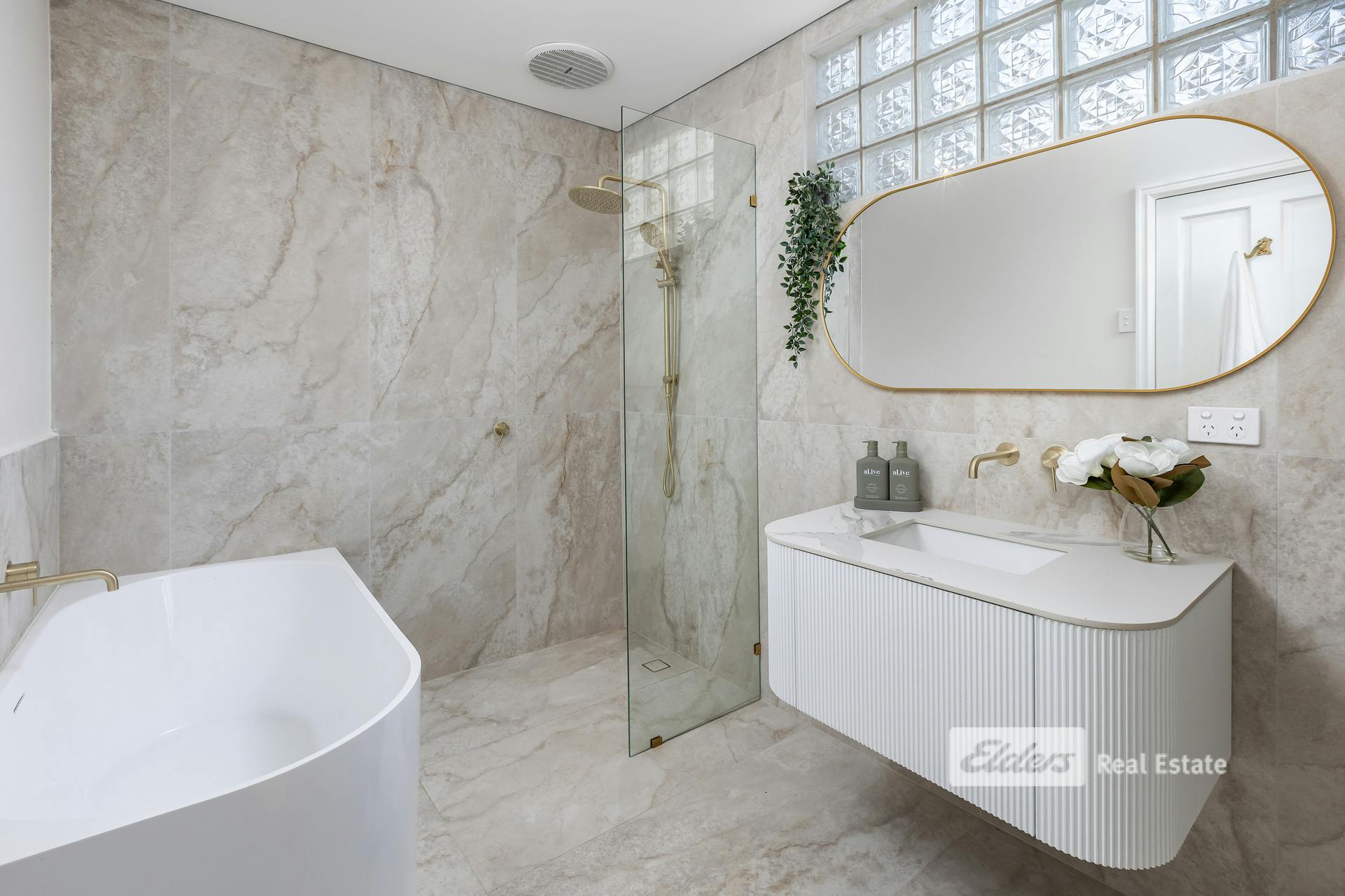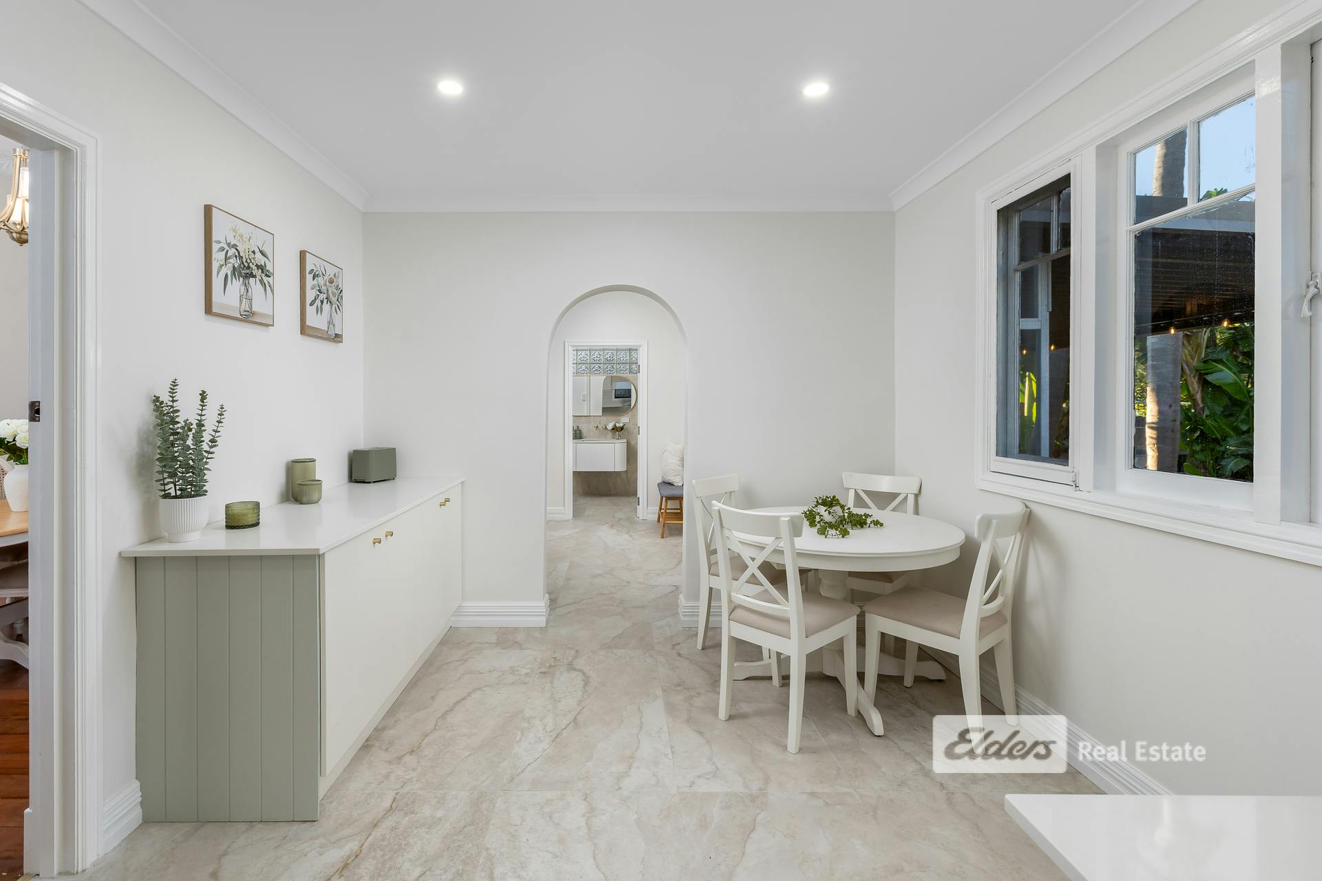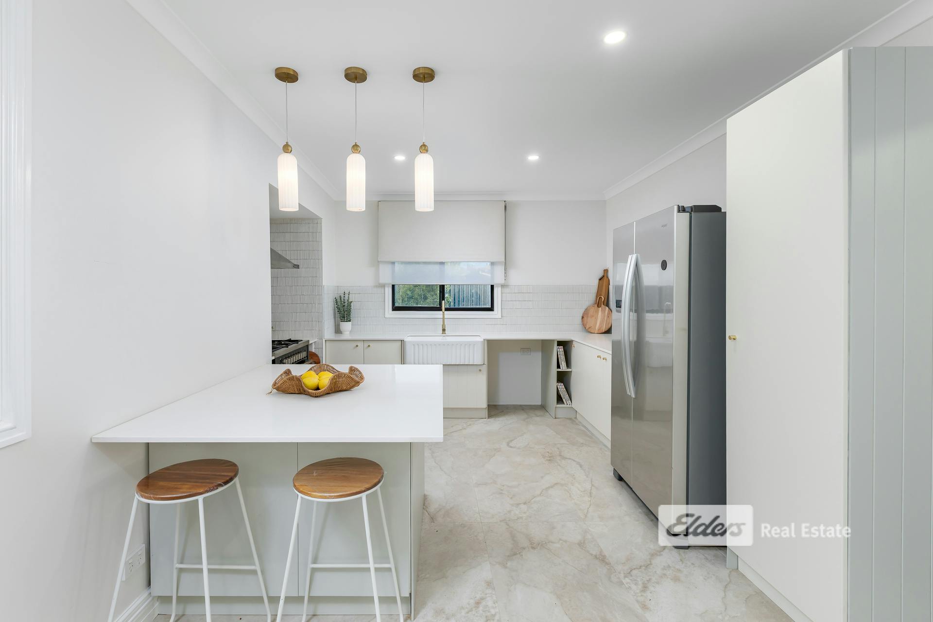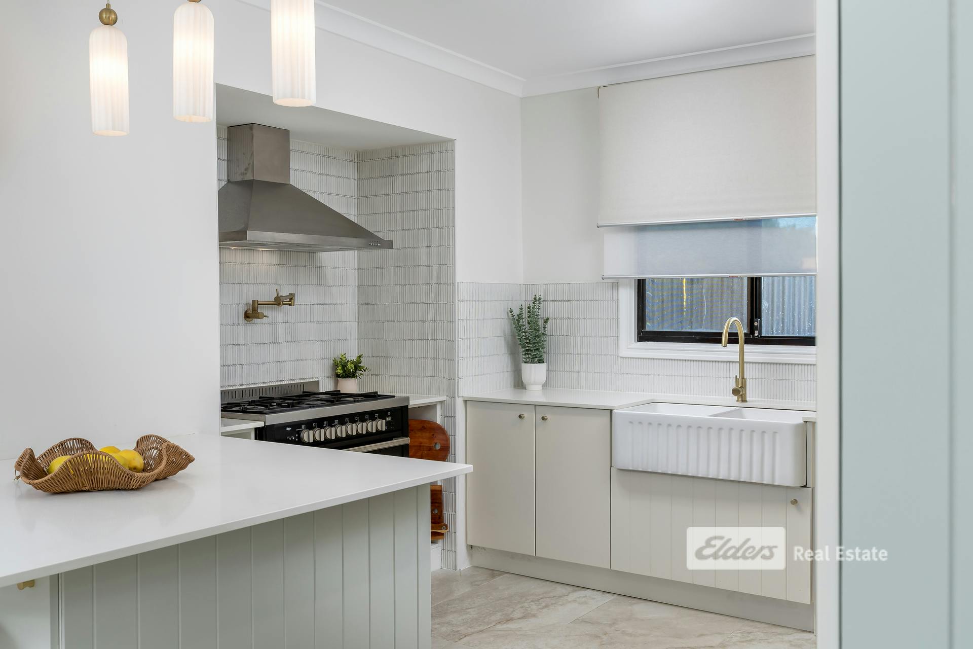 The bathrooms have been finished to an exceptional standard, with three fully renovated spaces featuring premium fixtures and self-cleaning tornado toilets. The master ensuite is a standout, showcasing federation tiles and gold tapware. A new laundry and mudroom continue the theme, with stone benchtops and floor-to-ceiling cladding, while large-format travertine tiles flow wall-to-ceiling from the kitchen through to the laundry and bathroom zones.